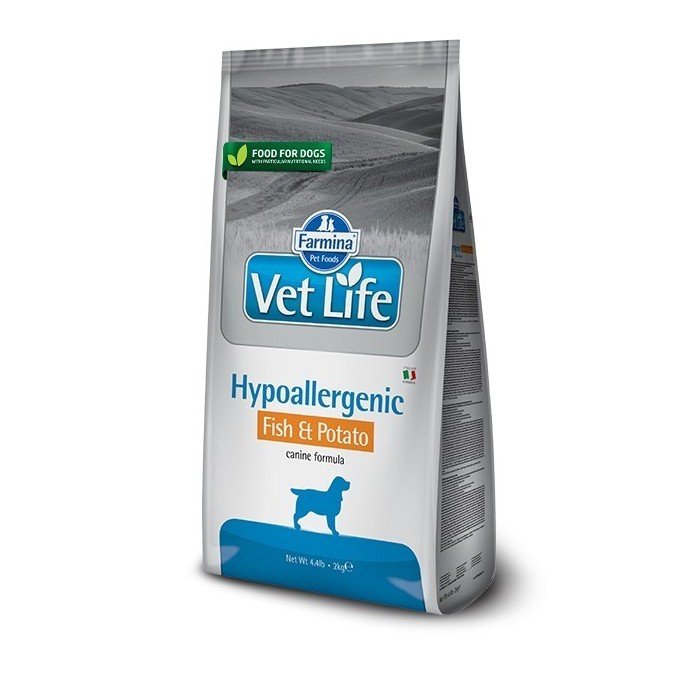 Farmina Vet Life Dog Hypoallergenic Pescado es una comida dietética veterinaria completa para perros indicado para la reducción de la intolerancia alimenticia. Asimismo se aconseja como apoyo de la función trófica de la piel y sus apéndices: ojos, oídos, sacos anales.